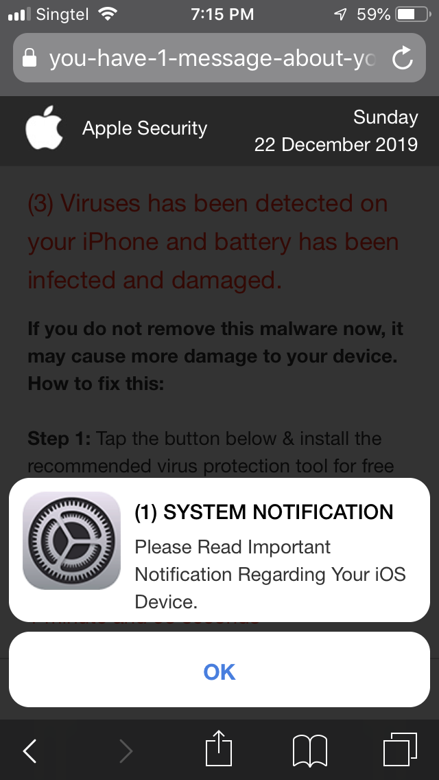 Your Apple Iphone Is Infected Virus Popups Removal From Iphone Ipad And Mac Macsecurity
